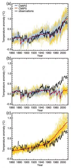 „Die Modelle geben die beobachteten Muster und Trends [des Klimas] über viele Dekaden der Erdoberflächentemperatur im kontinentalen Maßstab wieder, einschließlich der stärkeren Erwärmung seit Mitte des 20. Jahrhunderts und der unmittelbar auf große Vulkaneruptionen folgenden Abkühlung.“