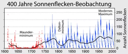 - Eine Untersuchung des Maunder-Minimums ergab, dass einige Regionen der Erde damals stark abkühlten (zum Beispiel Mitteleuropa), in anderen jedoch die Temperatur stabil blieb oder gar stieg; global gesehen änderte sich relativ wenig, die Erdmitteltemperatur sank um lediglich 0,3 bis 0,4 Grad Celsius (Shindell 2001). Hier zeigte sich, dass der Einfluss der Sonne begrenzt ist. Auch für die gegenwärtige Erderwärmung belegten zahlreiche Studien, dass die Sonne aktuell nur sehr wenig bis keinen Einfluss hat.
