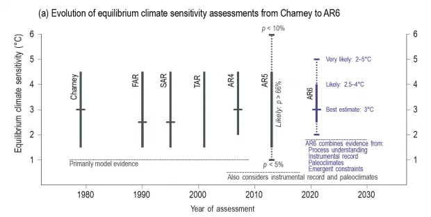 In den vergangenen Jahren haben sich die Ungewissheiten bei der Schätzung deutlich verringert, vor allem im unteren Bereich. In seinem Fünften Sachstandsbericht von 2013 (Band 1, Kapitel 12, Box 12.2) hatte der IPCC noch eine Spanne von 1,5 bis 4,5 Grad Celsius und kein best estimate genannt.