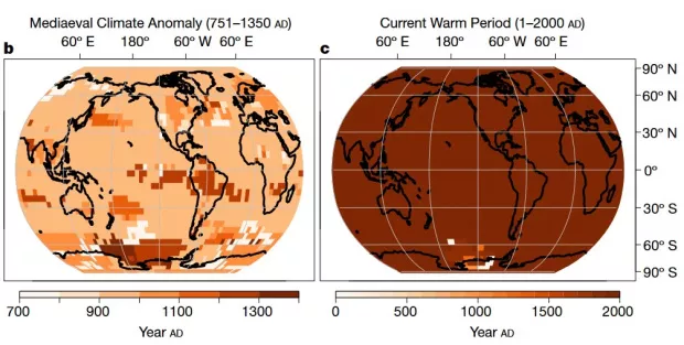 Wer behauptet, während der Mittelalterlichen Warmzeit sei es wärmer gewesen als heutzutage, beschränkt sich unzulässigerweise auf wenige Regionen mit damals ungewöhnlich warmen Temperaturen.