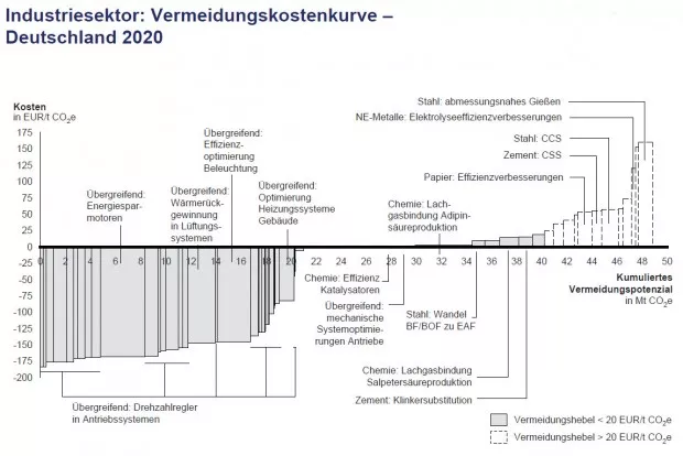 Abbildung 3: Kostenkurve für die Vermeidung von Treibhausgasen in der deutschen Industrie. Quelle: McKinsey 2009